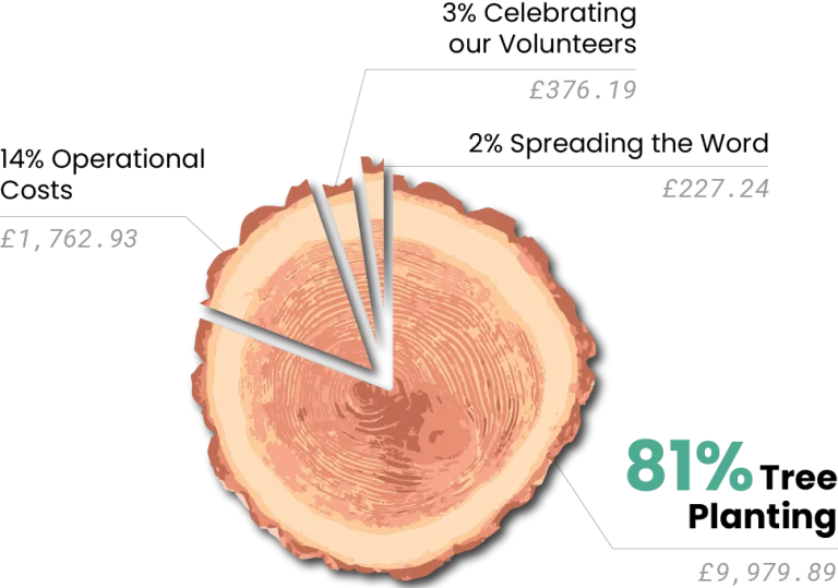 81p in every £1 you donate helps us plant trees! Here’s the breakdown of how we raised money and our spending in 2025.