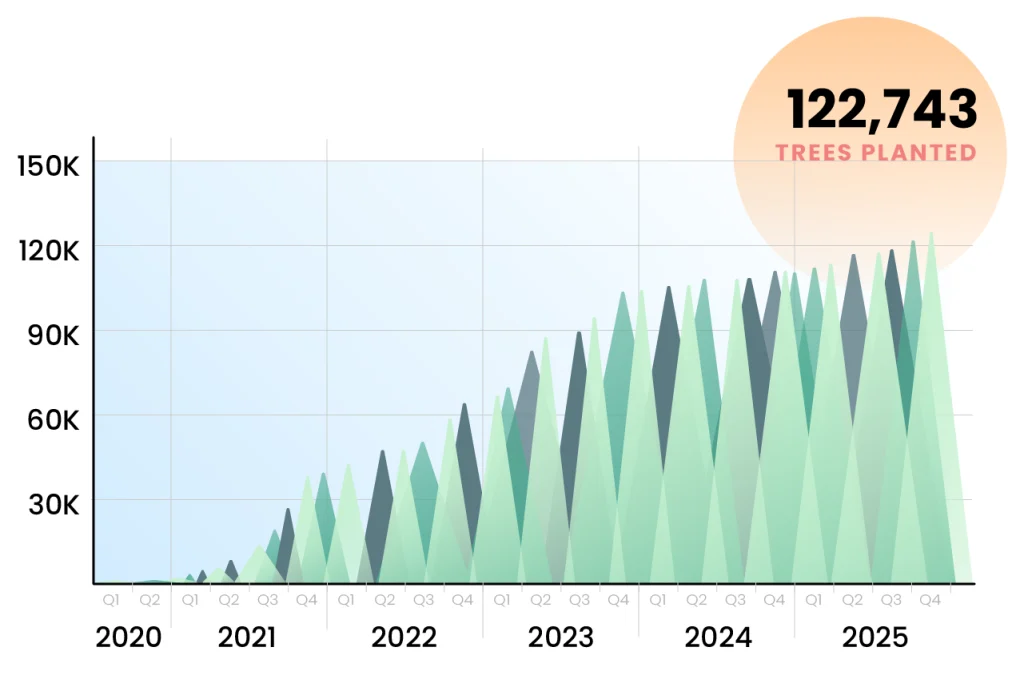 We ended 2025, with 122,743 trees funded, so quite a long way off the target for the year. We always knew 300,000 would be a stretch when we set it as we wanted to aim for what we consider to be a milestone target.